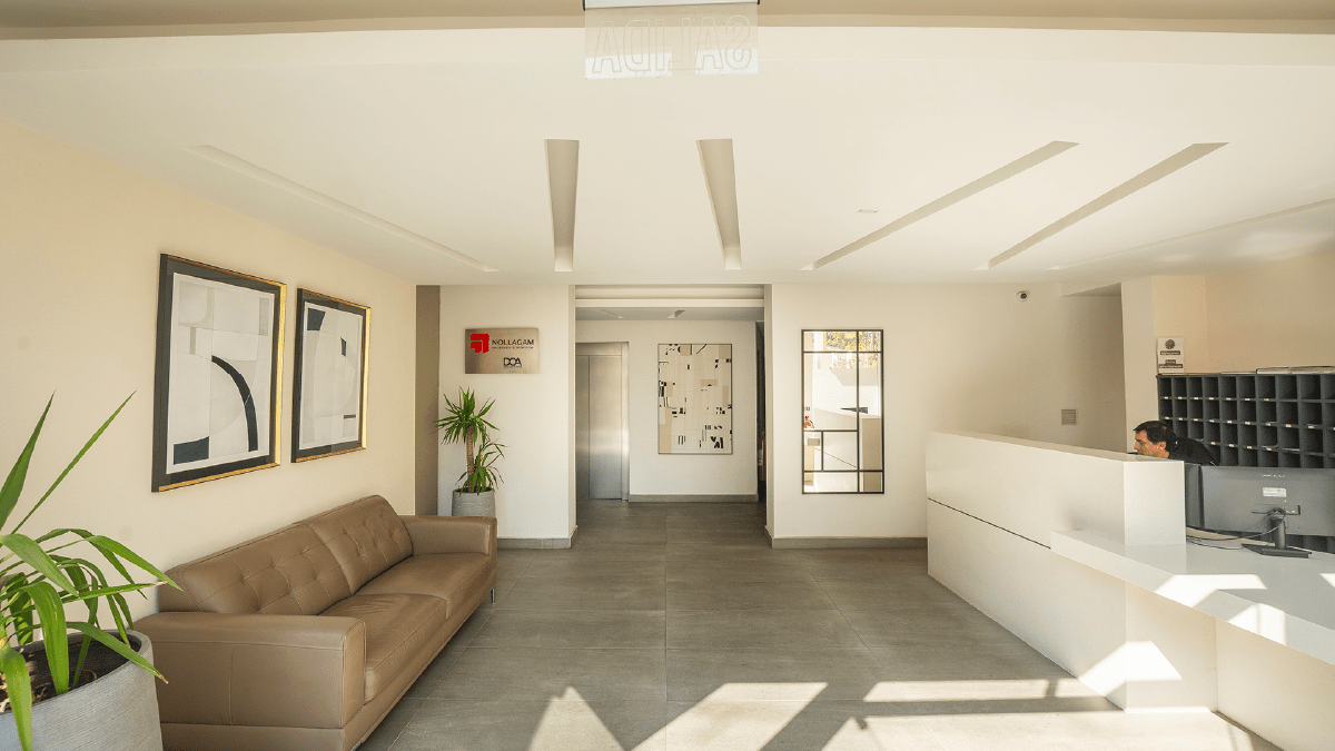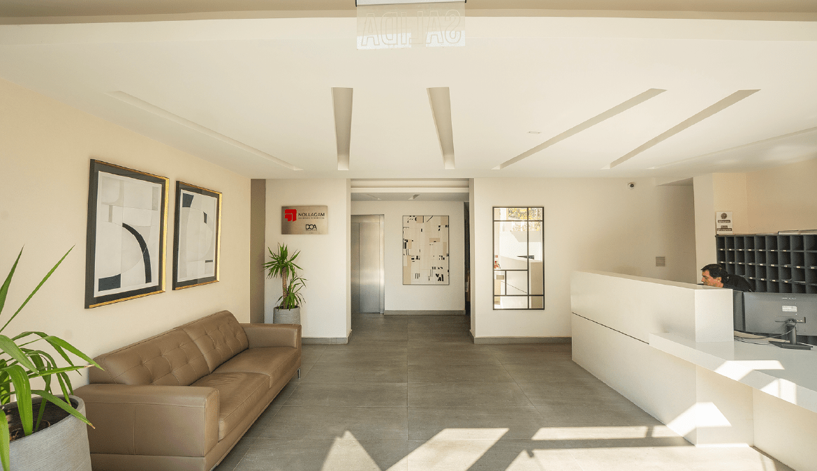 Características y terminaciones: piso de gres porcelanato en todo el depto. excepto baños y terrazas. Ventanales de aluminio blanco. Cocina con encimera eléctrica, horno, campana y muebles con cubierta de cuarzo blanco. Agua caliente individual con termo eléctrico.