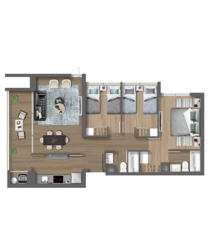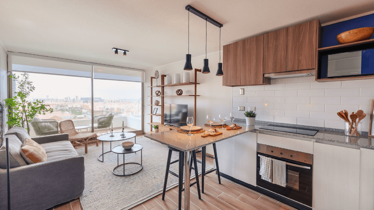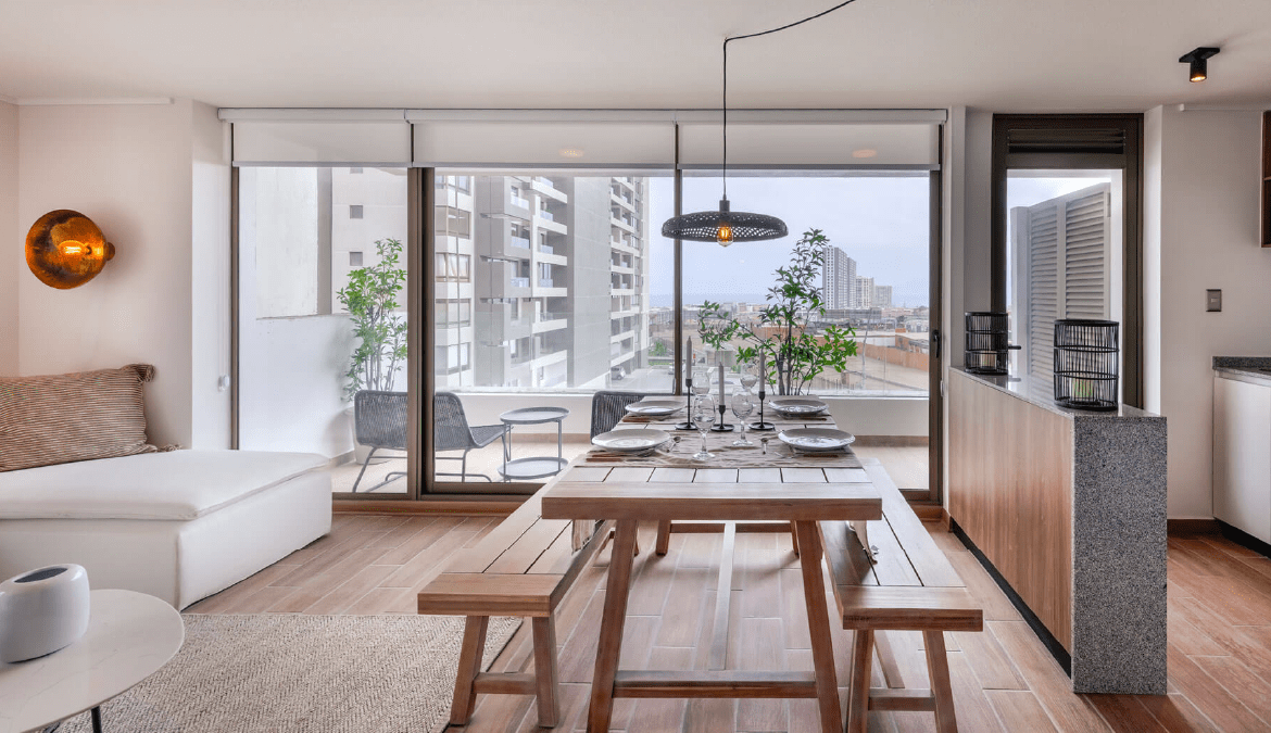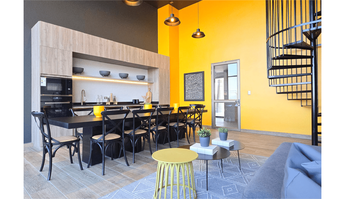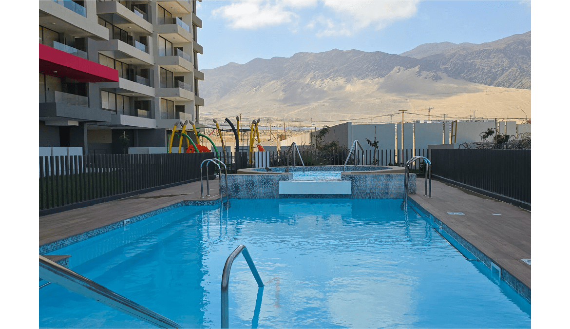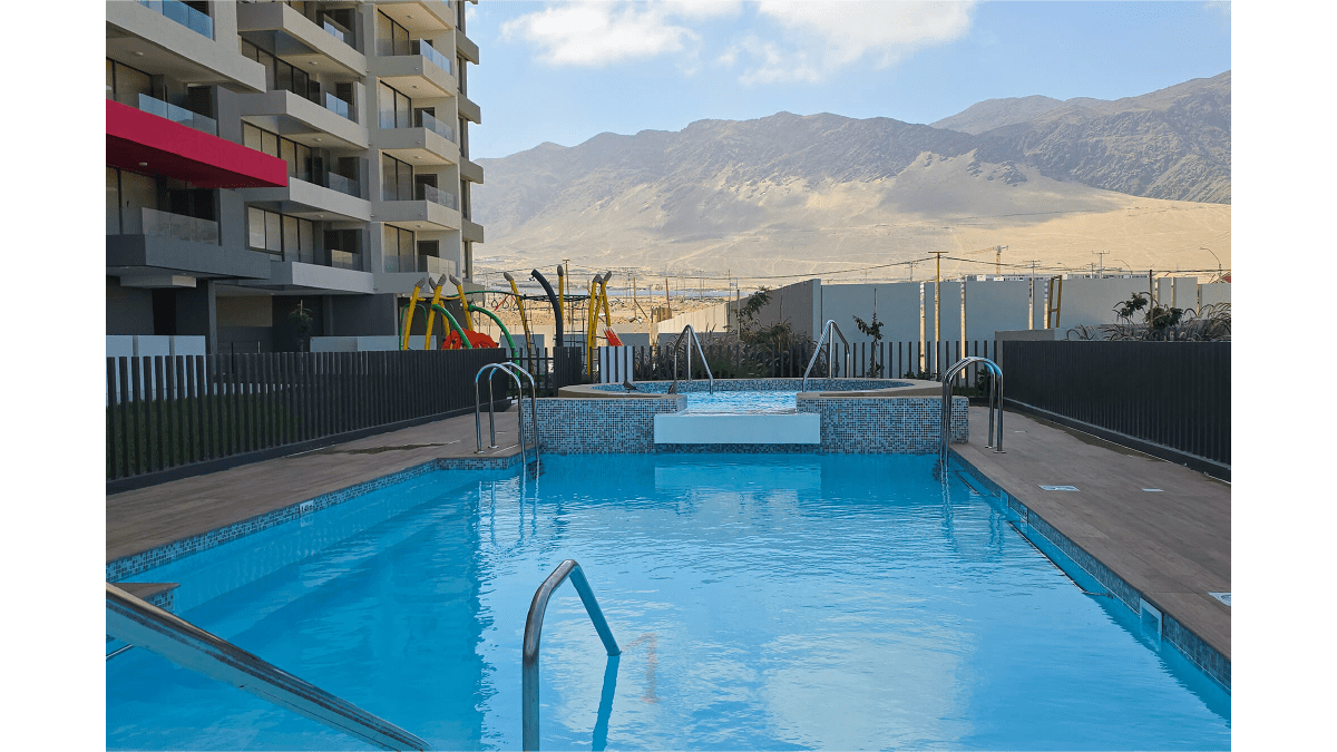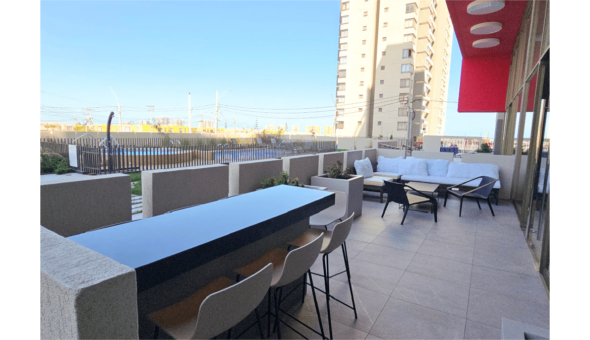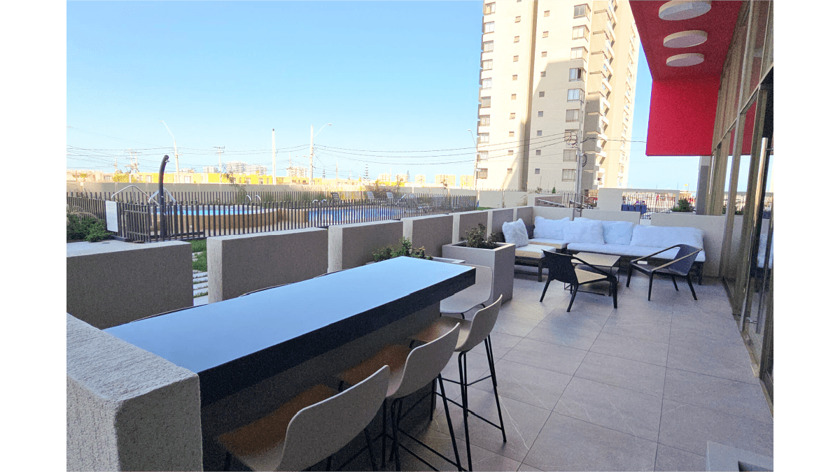 Equipamiento destacado: Hall de entrada de doble altura; Sala gourmet con terraza lounge; Piscina; Gimnasio full equipado; Sala de Yoga; Sala e-commerce; 2 quinchos panorámicos con patio interior; Áreas verdes con paisajismo.