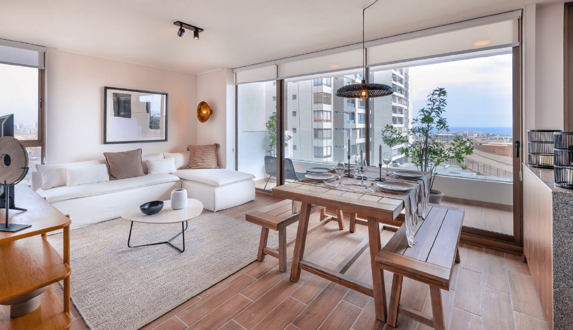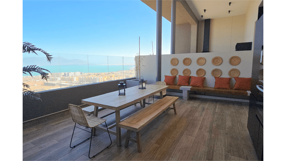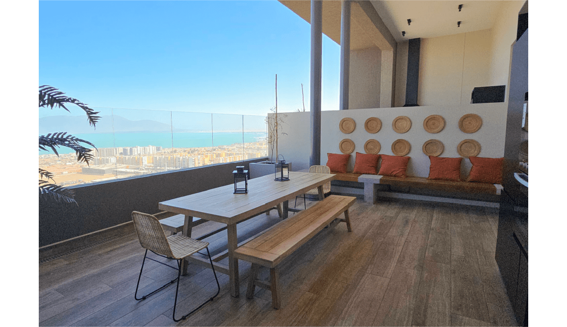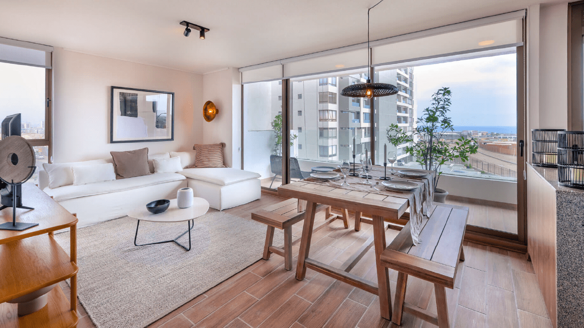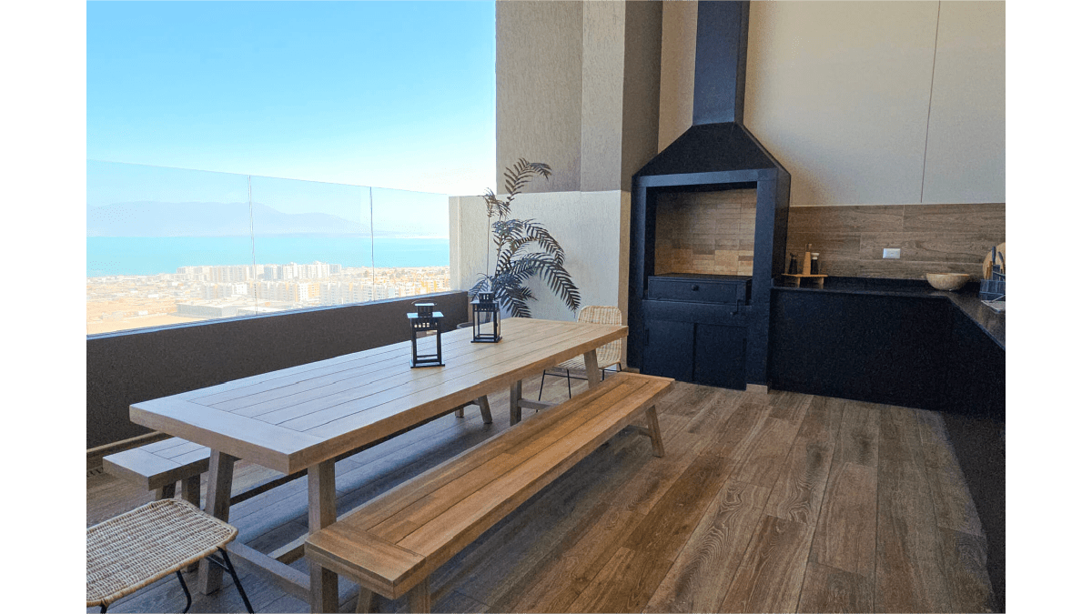 El edificio Las Garzas sobresale por el diseño de sus fachadas, con vigas que otorgan sombras a los espacios interiores y sostienen sus terrazas, dando una segunda piel al edificio y un look más contemporáneo. Sus quinchos con lounge integrados de doble altura conquistan la costa de toda la bahía de Antofagasta, con las puestas de sol más espectaculares de la ciudad.