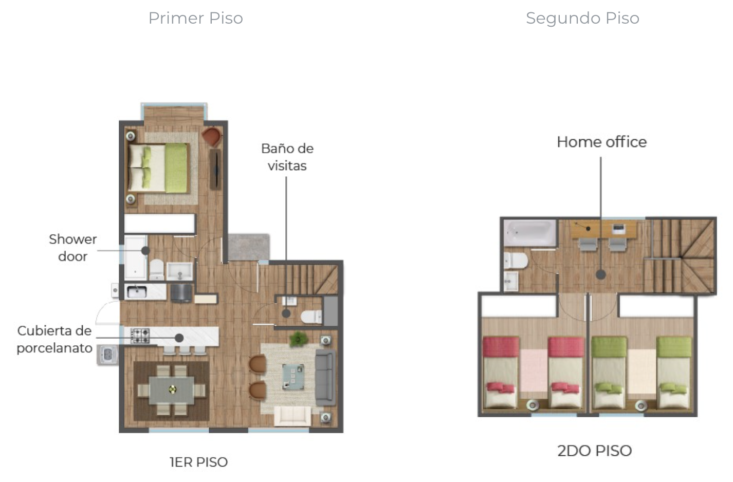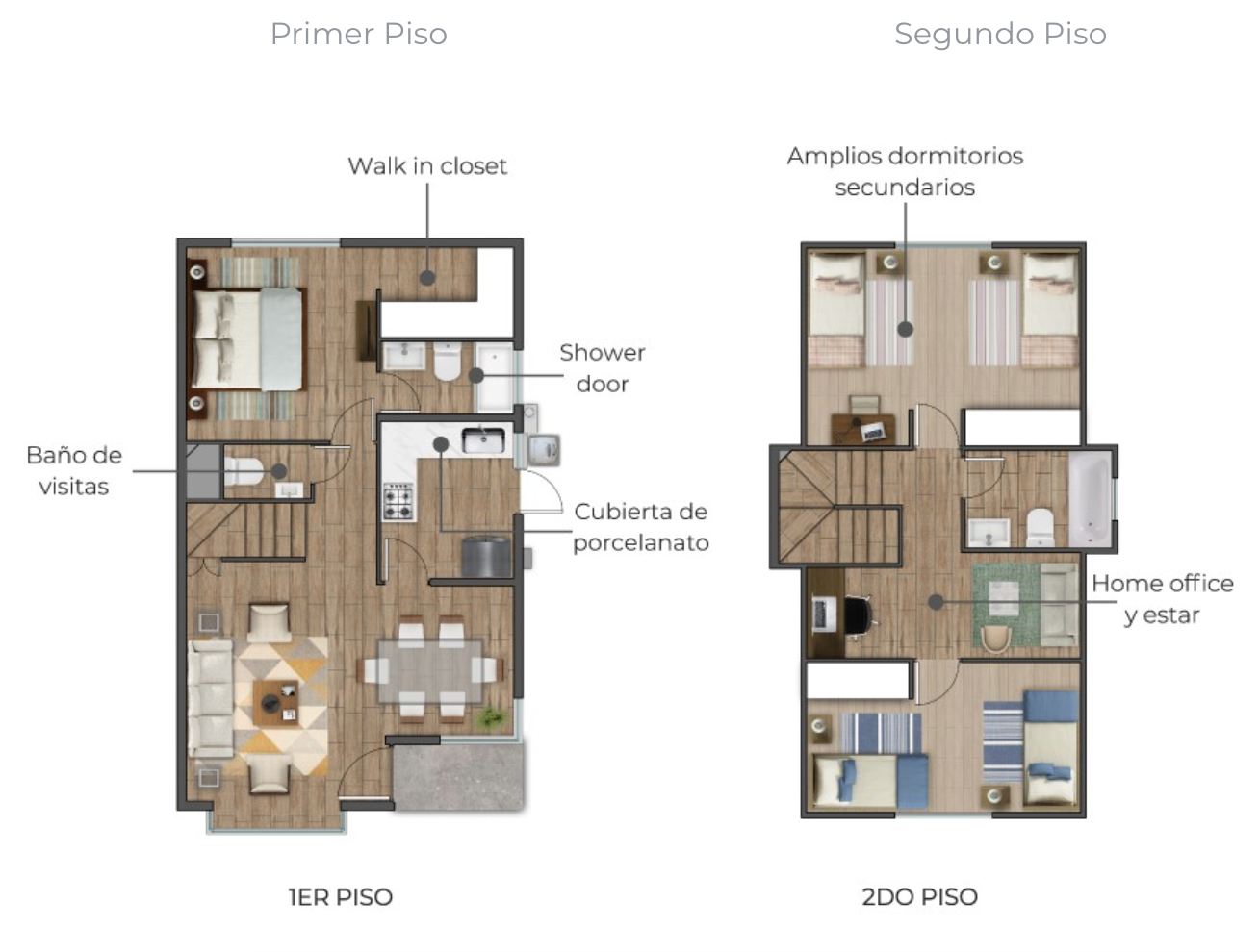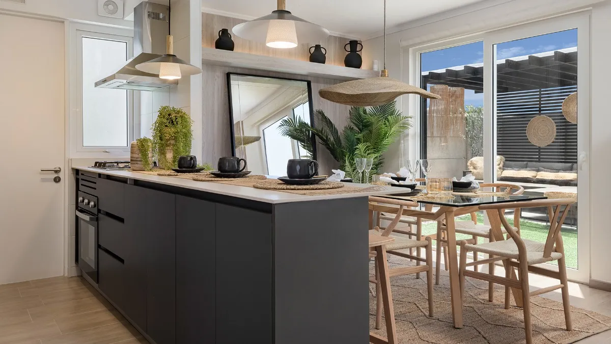 Características y terminaciones: Cocina integrada, full equipada y una moderna cubierta de porcelanato. Casas de 3 dormitorios con piso gres porcelánico en primer y segundo nivel, home office integrado y estar, según modelo. Todas las casas son de hormigón armado en el primer piso y cuentan con ventanas termopanel con marcos de PVC en toda la vivienda. Además de calefacción eléctrica y revestimiento térmico exterior tipo EIFS, para ambientes más confortables.