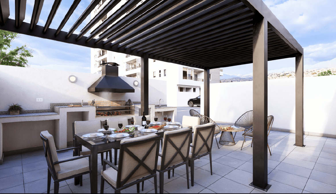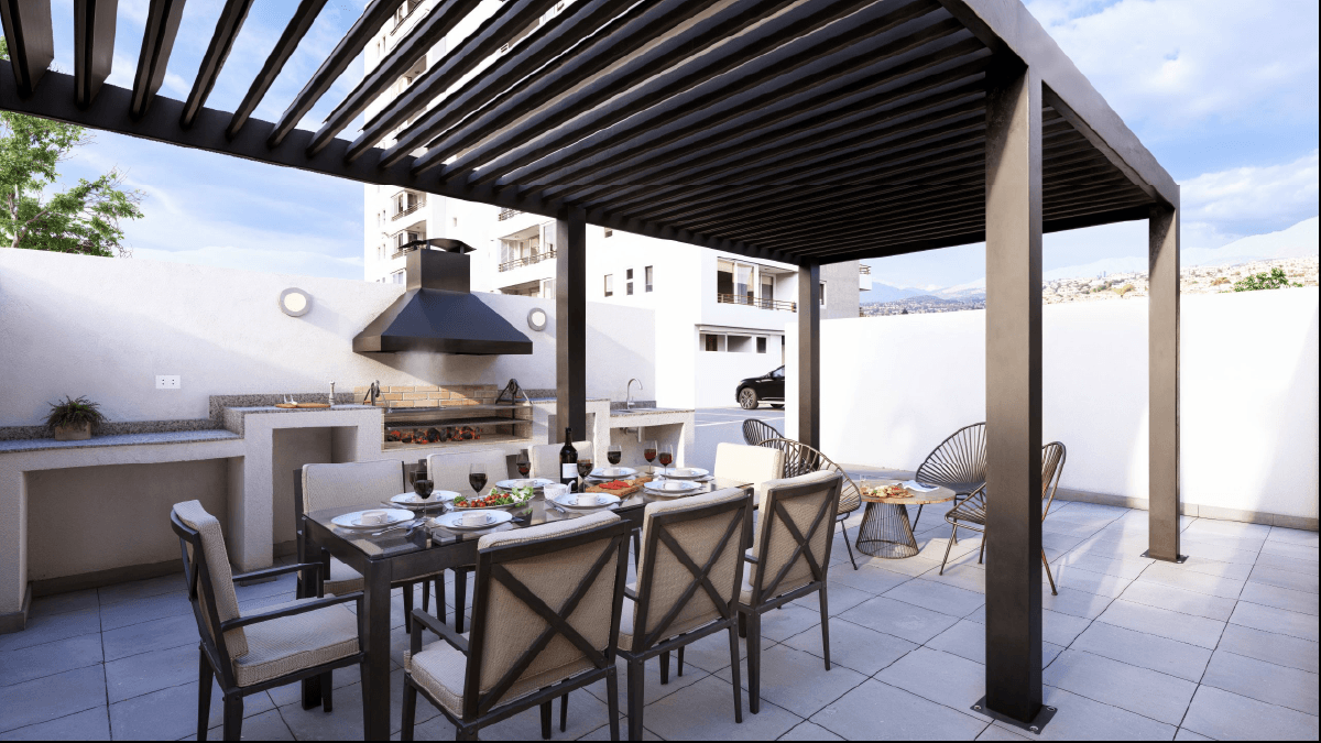 Equipamiento destacado: Quincho exterior; Sala cowork; Salón gourmet; Lavandería equipada; Salón lounge; Gimnasio.
