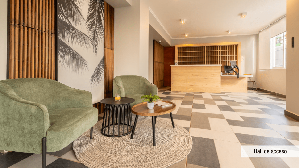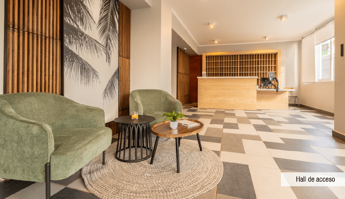 Características y terminaciones: piso vinílico SPC en living comedor, pasillo y dormitorios, piso gres porcelánico en terraza y baños. Cocina equipada con campana, horno eléctrico y encimera a gas, cubierta de granito en muebles de cocina. Dormitorio principal en suite, vanitorios con mueble y cubierta de loza vítrea, muros con papel mural, ventanas con marco de PVC, espacio y conexión para lavadora en todos los departamentos, calefont individual.