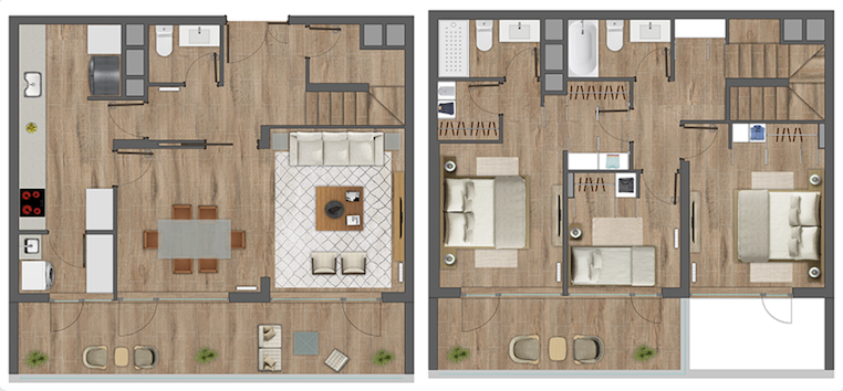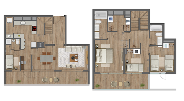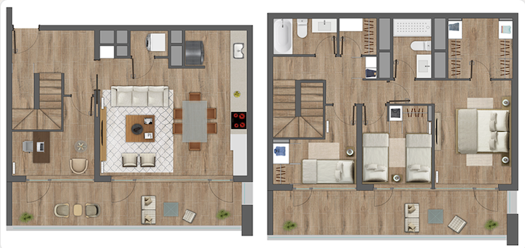 Características y terminaciones: piso gres porcelánico y ventanas termopanel con marco de PVC folio madera. Aisladores sísmicos, ventilación convectiva y revestimiento térmico. Cocina amoblada y equipada full eléctrica. Terrazas.