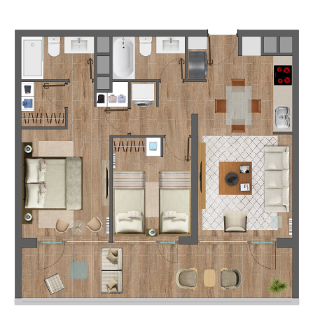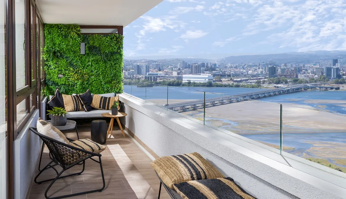 Conoce y vive la experiencia Altos de Idahue: exclusivos, amplios y vanguardistas departamentos con una vista insuperable al Río Bio Bío (según modelo).